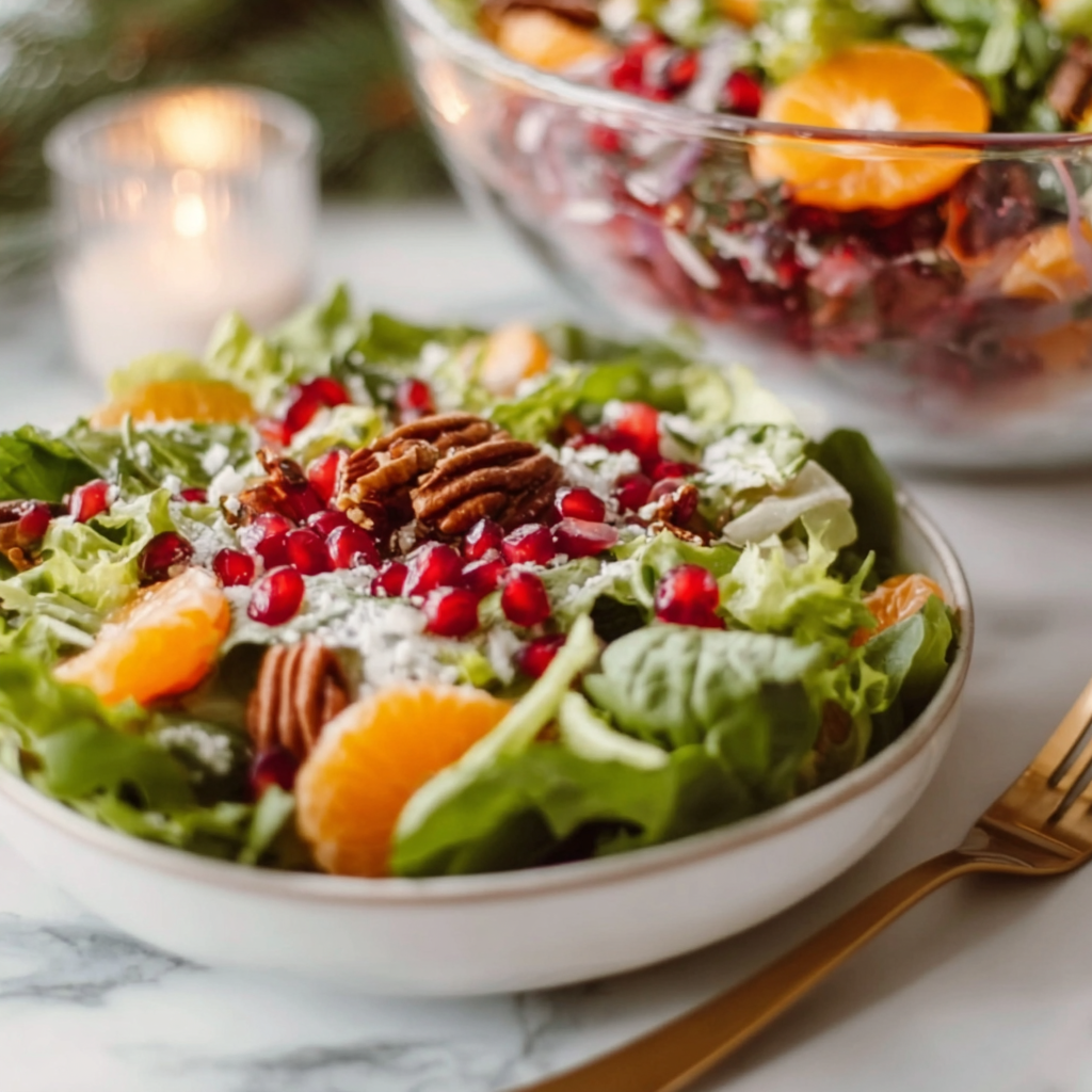 Holiday meals are often full of rich, cozy dishes — creamy potatoes, buttery rolls, hearty casseroles, and decadent desserts. But every Christmas table deserves at least one bright, refreshing, vibrant dish that balances all that comfort food. This Christmas Salad with Citrus & Pomegranate is exactly that. It’s light, colorful, bursting with seasonal flavors, and absolutely beautiful.