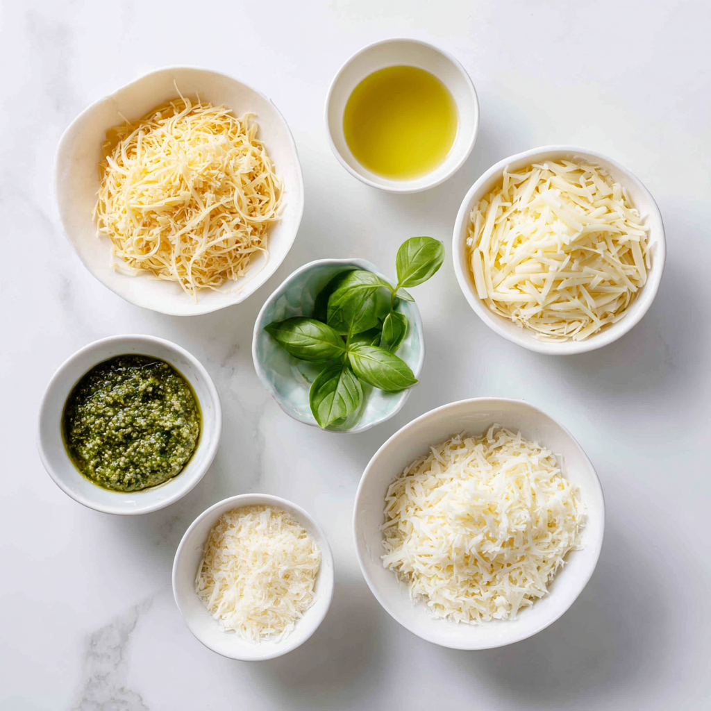 - Sprinkle mozzarella over the pesto.