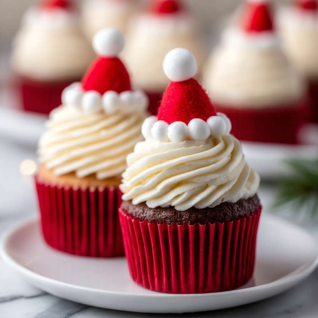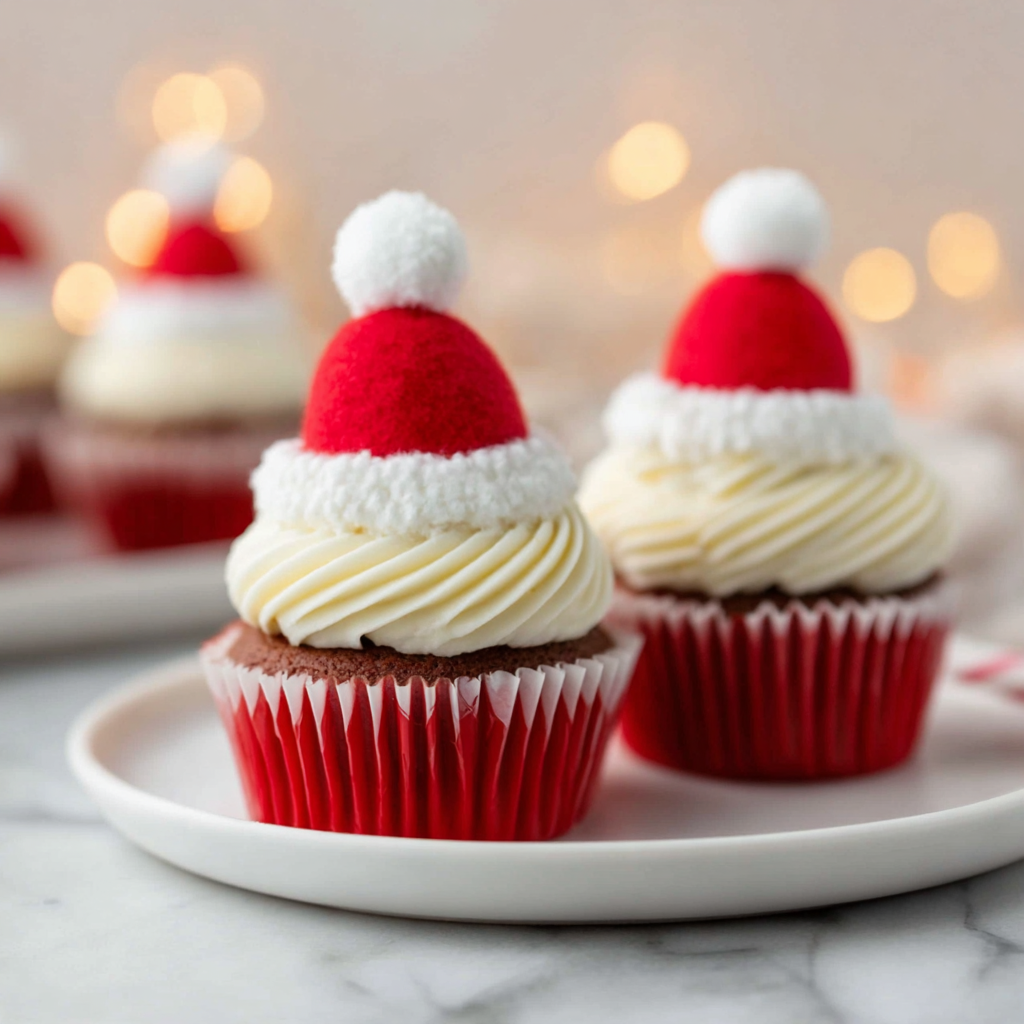 What makes these Santa hat cupcakes especially appealing is how simple they are to assemble. You don’t need special tools beyond a piping bag and a large round or star piping tip. The design is quick, the colors are festive, and the results are consistently adorable. Even beginner bakers or young helpers can join in to decorate.