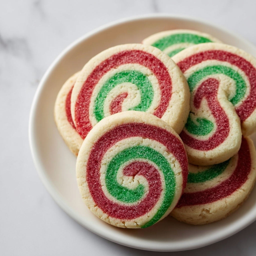 Bright, buttery, swirl-patterned sugar cookies perfect for Christmas gifting, holiday parties, and festive baking.