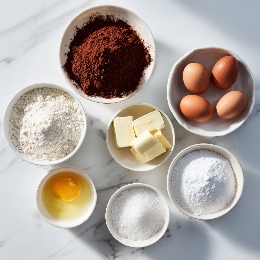 - Whisk flour, cocoa powder, sugar, baking soda, and salt together.