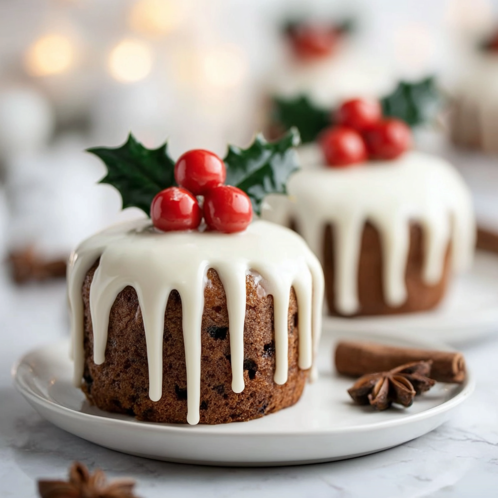 Festive Christmas Pudding Cupcakes with Vanilla Glaze