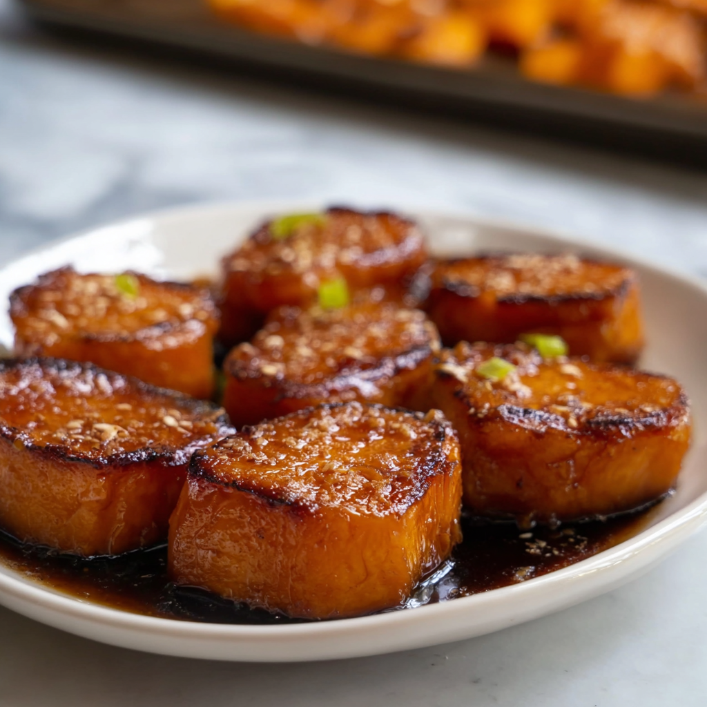 Cut into thick rounds and roasted until their edges caramelize, they look like little golden medallions. The miso glaze adds a high-shine finish that looks restaurant-worthy.