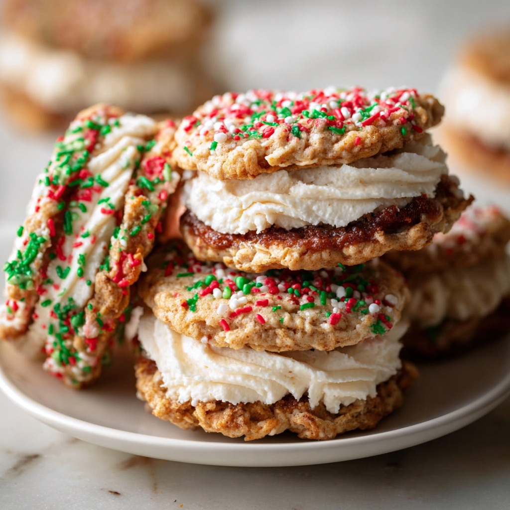 Few desserts capture the warm, cozy spirit of Christmas quite like a soft, spiced cookie. And if you love the nostalgic flavor of classic oatmeal cream pies, this Christmas version will instantly become your new holiday tradition. These Christmas Oatmeal Cream Pies combine the irresistible chewiness of old-fashioned oatmeal cookies with a fluffy vanilla frosting filling and plenty of festive sprinkles throughout. They’re soft, pillowy, sweet, and full of warm spices that make your whole kitchen smell like Christmas.