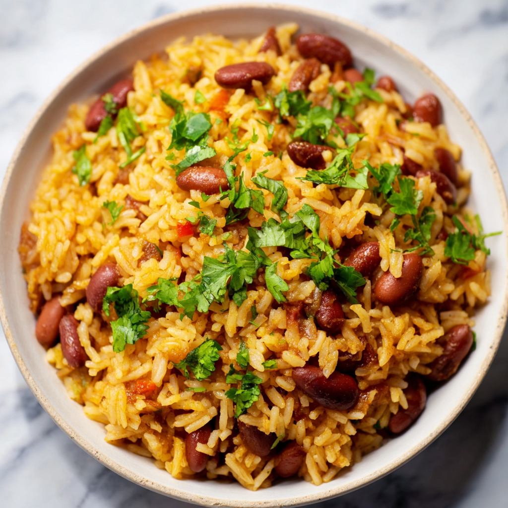 This Mom’s Authentic Puerto Rican Rice & Beans recipe tastes like it came straight out of a family kitchen in San Juan. It features perfectly seasoned yellow rice and tender pink beans simmered in a rich, savory sazón-and-sofrito base that brings all the classic island flavor.