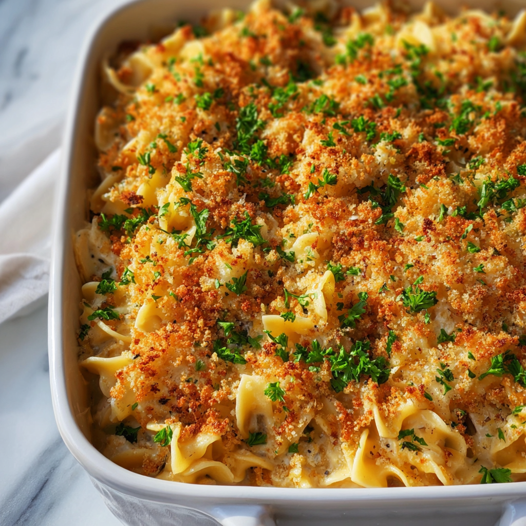 When the weather cools down or life just feels a little hectic, nothing brings comfort to the dinner table like a warm, creamy, classic Cozy Chicken Noodle Casserole. This nostalgic dish blends tender egg noodles, juicy chicken, vegetables, and a rich, creamy sauce all baked together under a golden, buttery breadcrumb topping. It’s the kind of meal that feels like a warm hug — simple, satisfying, and guaranteed to become a family favorite.
