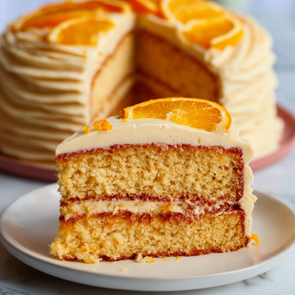 A hint of orange food coloring gives this cake a pastel citrus glow, perfect for spring, Easter, or summer celebrations.