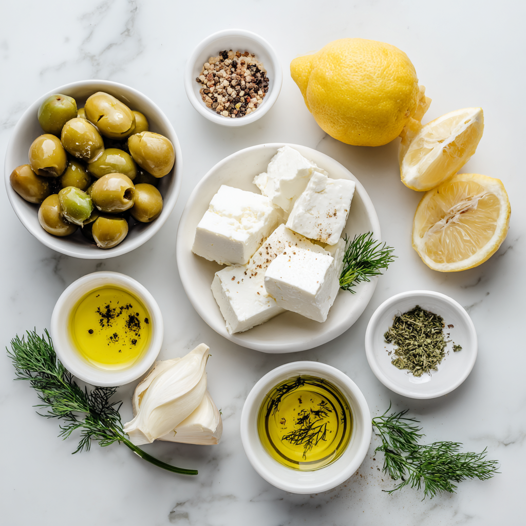 Green olives have been a Mediterranean staple for thousands of years. Their briny flavor pairs perfectly with feta, another ancient ingredient, making this spread a natural combination rooted in culinary history.