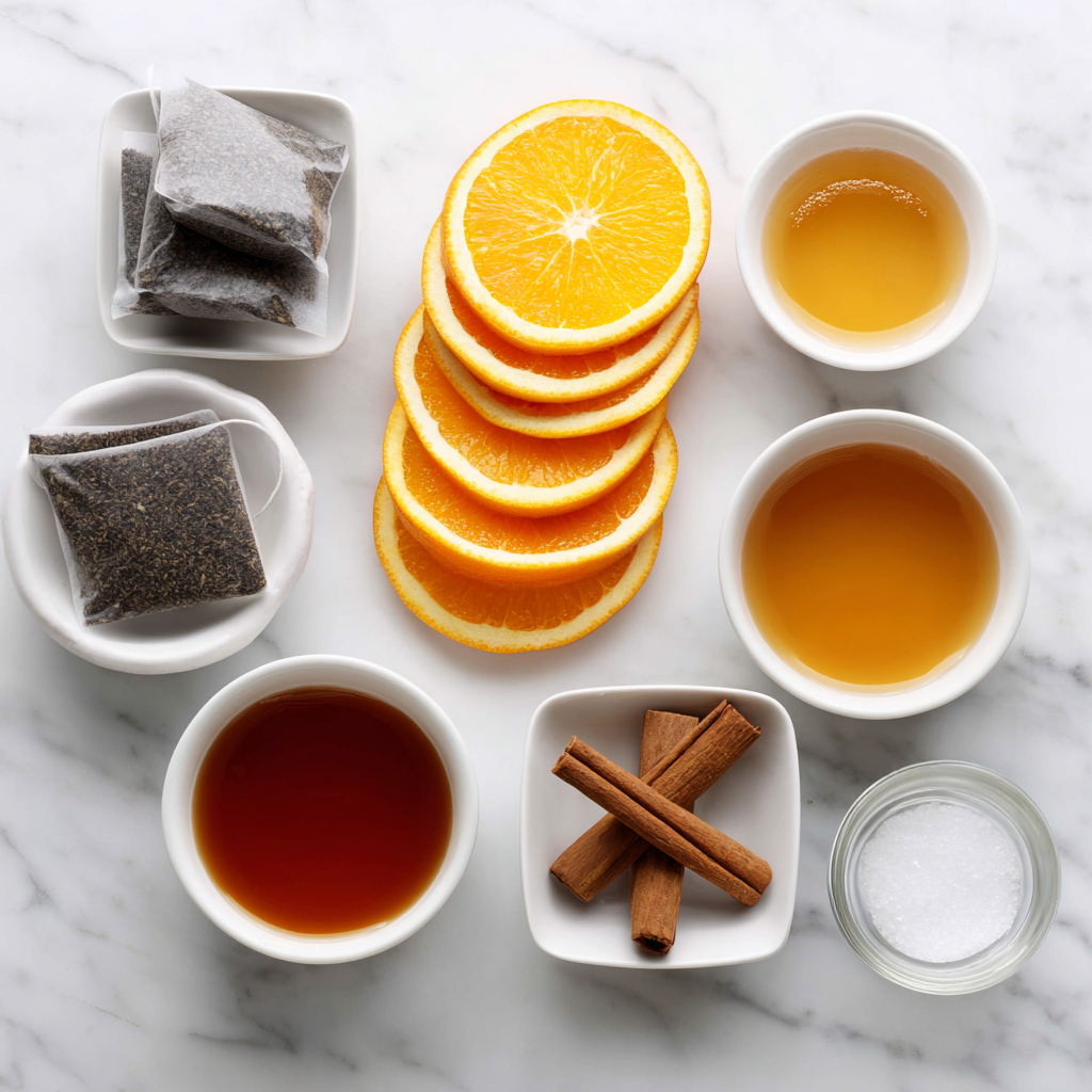 - Add orange slices, cinnamon sticks, and sweetener; steep 10–15 minutes.