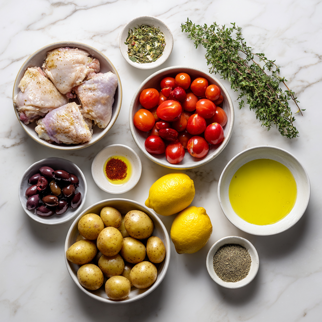 Roasted Mediterranean Chicken Thighs with Crispy Baby Potatoes