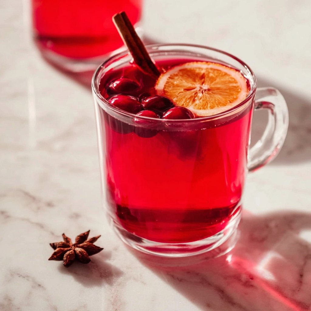 Cranberry juice on its own can be quite sharp, but when gently simmered with cinnamon, cloves, star anise, and orange, it transforms into a balanced, aromatic, cozy drink.