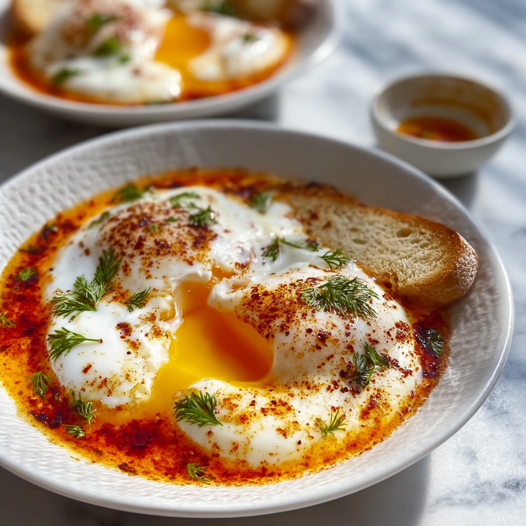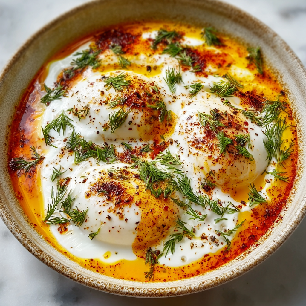 Simple ingredients, bold flavors, and centuries of tradition — Turkish Eggs (Çılbır) are a breakfast dish that proves comfort food doesn’t need to be complicated. With silky poached eggs nestled over garlicky yogurt and finished with warm spiced butter, this classic Turkish recipe is rich, tangy, savory, and completely unforgettable.