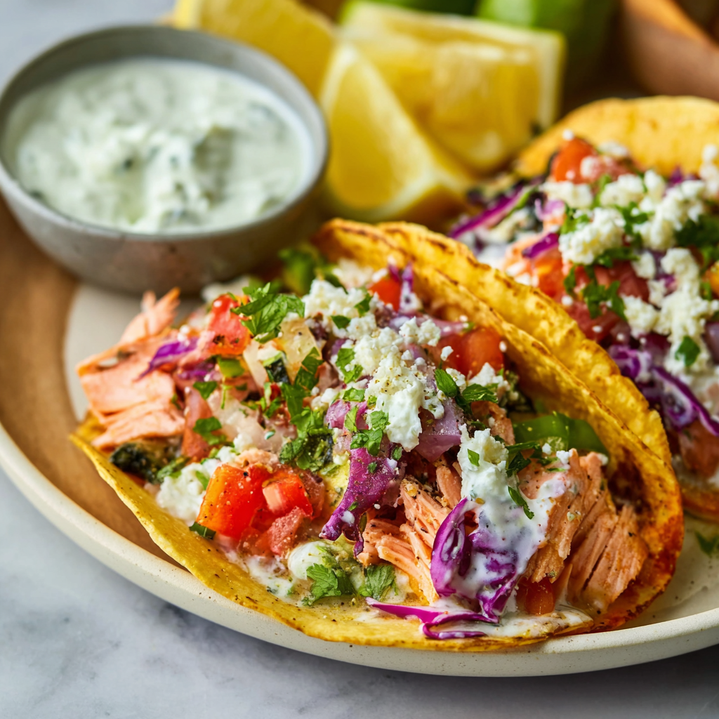 Mediterranean cuisine emphasizes balance—fresh produce, healthy fats, and simple seasoning—and salmon fits right in. Wrapped in a soft tortilla and topped with cooling tzatziki, the result is a taco that feels both comforting and refreshing.