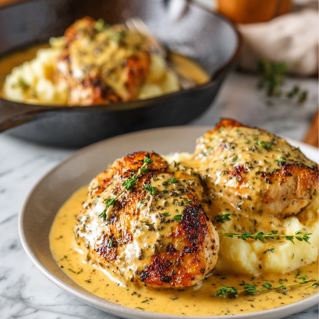 Elegant, comforting, and deeply flavorful, French Mustard Chicken (Poulet à la Moutarde) is a timeless French classic that proves simple ingredients can create extraordinary results. Juicy chicken is gently simmered in a creamy Dijon mustard sauce infused with shallots, garlic, and fresh herbs, resulting in a dish that feels both rustic and refined.