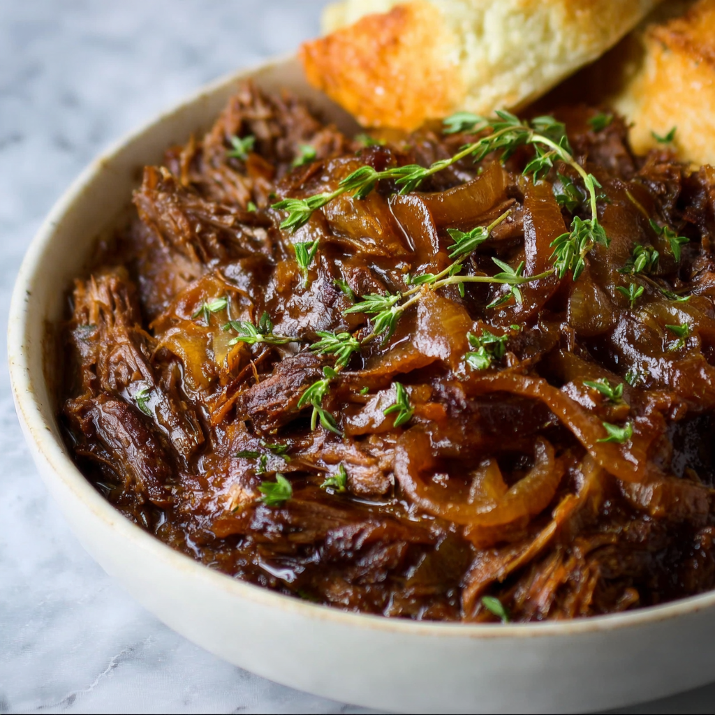 This slow cooker French onion pot roast is everything a comfort dinner should be — rich, cozy, deeply flavorful, and incredibly easy. With minimal prep and maximum payoff, it’s the kind of recipe that earns a permanent spot in your rotation.