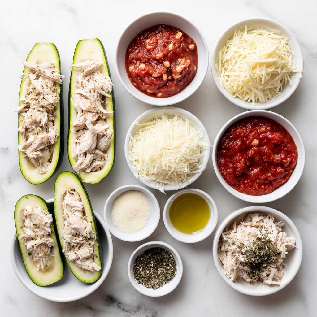The classic Italian‑American favorite — Chicken Parmesan — is beloved for its golden cheese layer and rich tomato sauce. But traditional recipes often rely on breaded chicken and pasta. By swapping out breading and pasta for hollowed‑out zucchini filled with juicy chicken and marinara, this version keeps all the charm while being healthier and low carb.