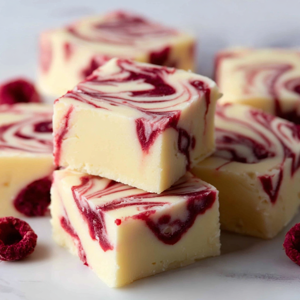 Fresh or frozen raspberries contain too much moisture and can prevent the fudge from setting properly. Freeze-dried raspberries are the best option for flavor and texture. If unavailable, raspberry extract can be used sparingly for flavor, though the visual swirl will be less dramatic.