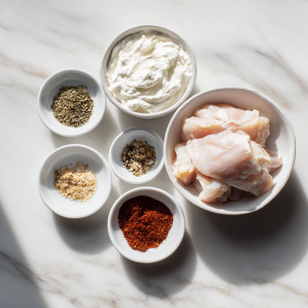 Yogurt has been used as a marinade for centuries across many cultures, from Middle Eastern shawarma to Indian tandoori chicken. Its natural acidity gently tenderizes meat without making it mushy, while its creamy texture helps seasonings cling beautifully to every bite. The result? Chicken that’s moist on the inside, lightly caramelized on the outside, and packed with subtle tangy flavor.