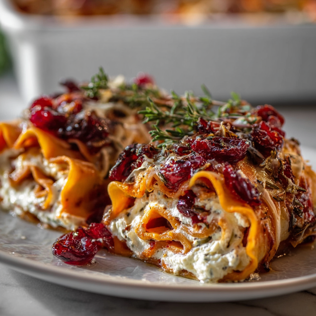 Cinnamon Roasted Sweet Potato & Cranberry Lasagna Rolls with Ricotta