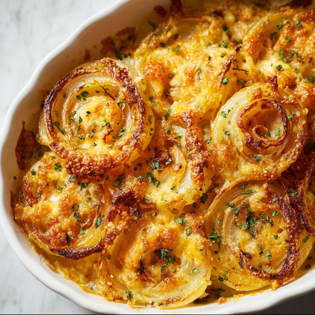 Despite the name, Tennessee Onions aren’t complicated or fancy. They’re rustic, comforting, and deeply satisfying. The onions soften into a mild, almost sweet base while the cheese forms a rich, gooey blanket on top. Every bite is savory, buttery, and perfect alongside grilled meats, holiday dinners, or weeknight comfort meals.