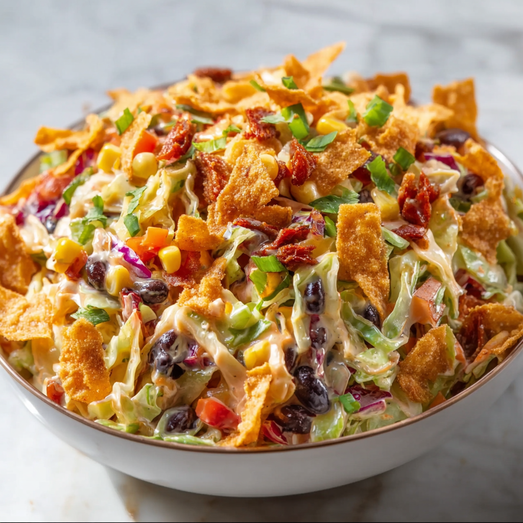 Nutritionally, cabbage is a superstar—low-calorie, high in vitamins C and K, plus fiber for gut health. Beans and corn add plant-based protein and antioxidants. Sure, the Fritos and dressing bump up calories, but moderation makes this a fun, balanced side.