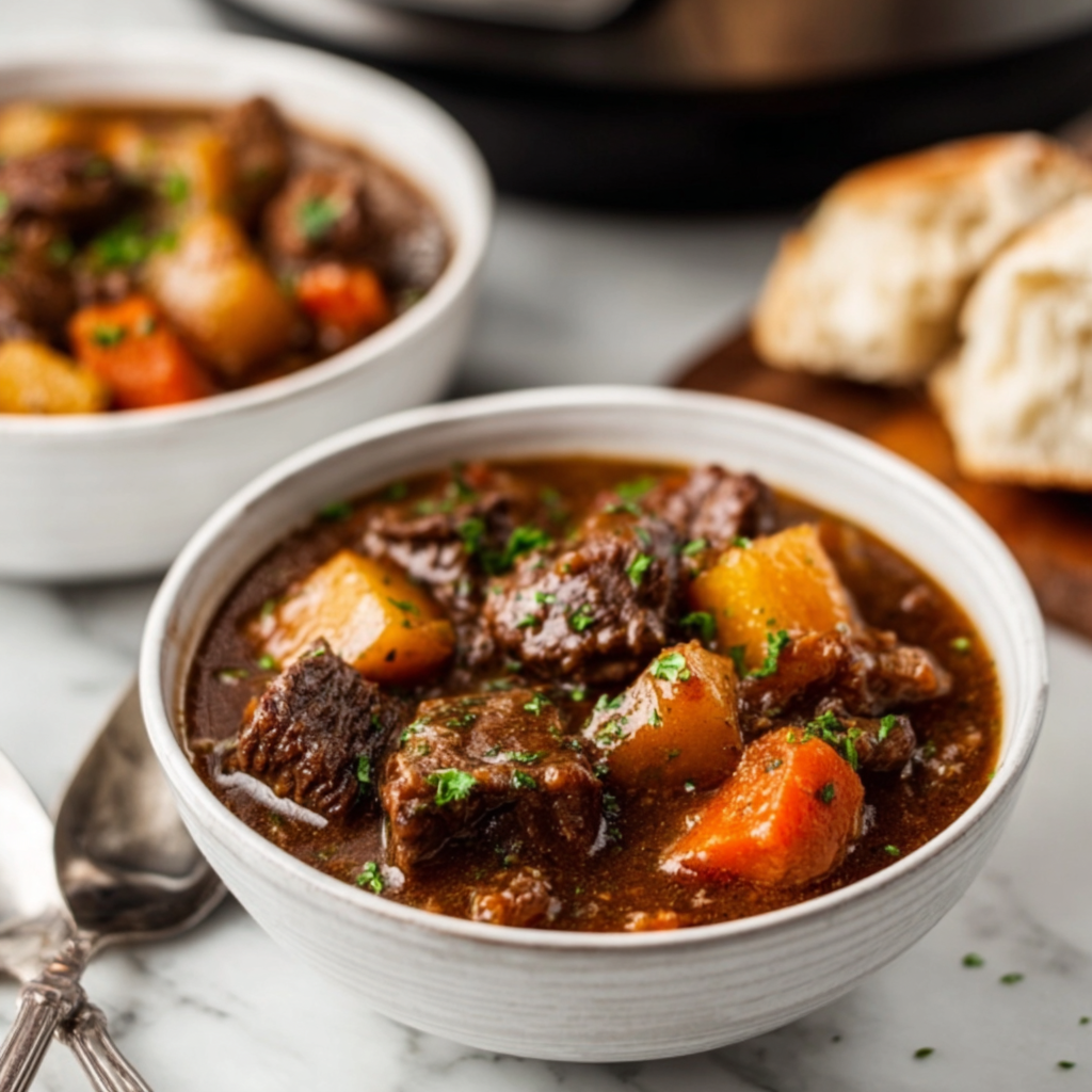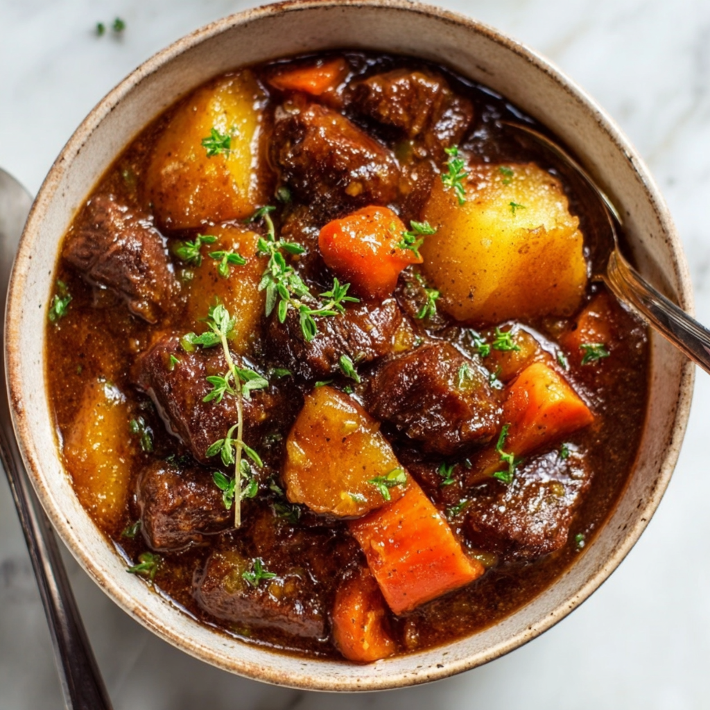 A small amount of tomato paste adds depth, while herbs like thyme and bay leaf provide warmth and aroma. The result is a stew that tastes like it’s been tended all day — because it has.