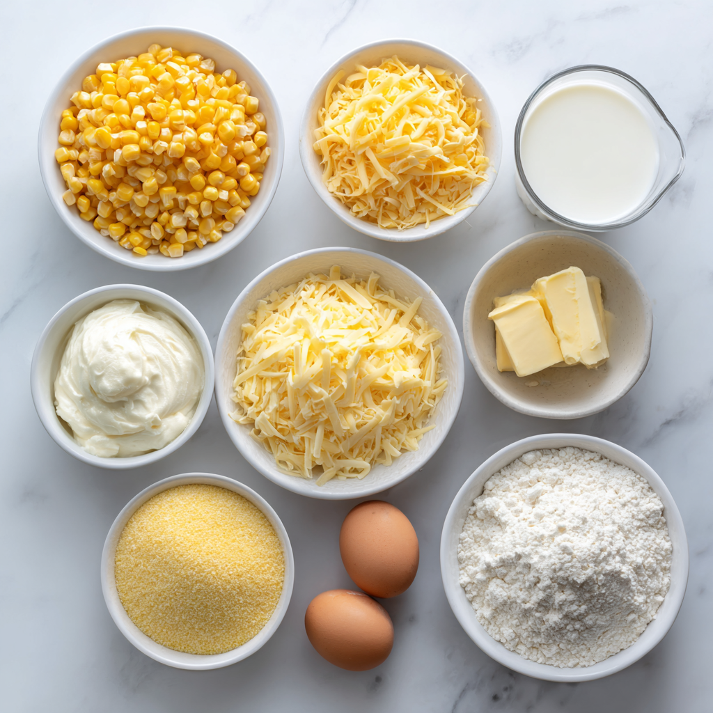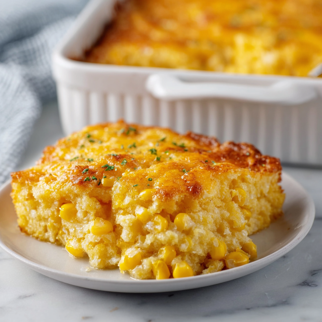 A rich, creamy, and comforting corn casserole loaded with sweet corn and melted cheese, perfect for holidays and family dinners.