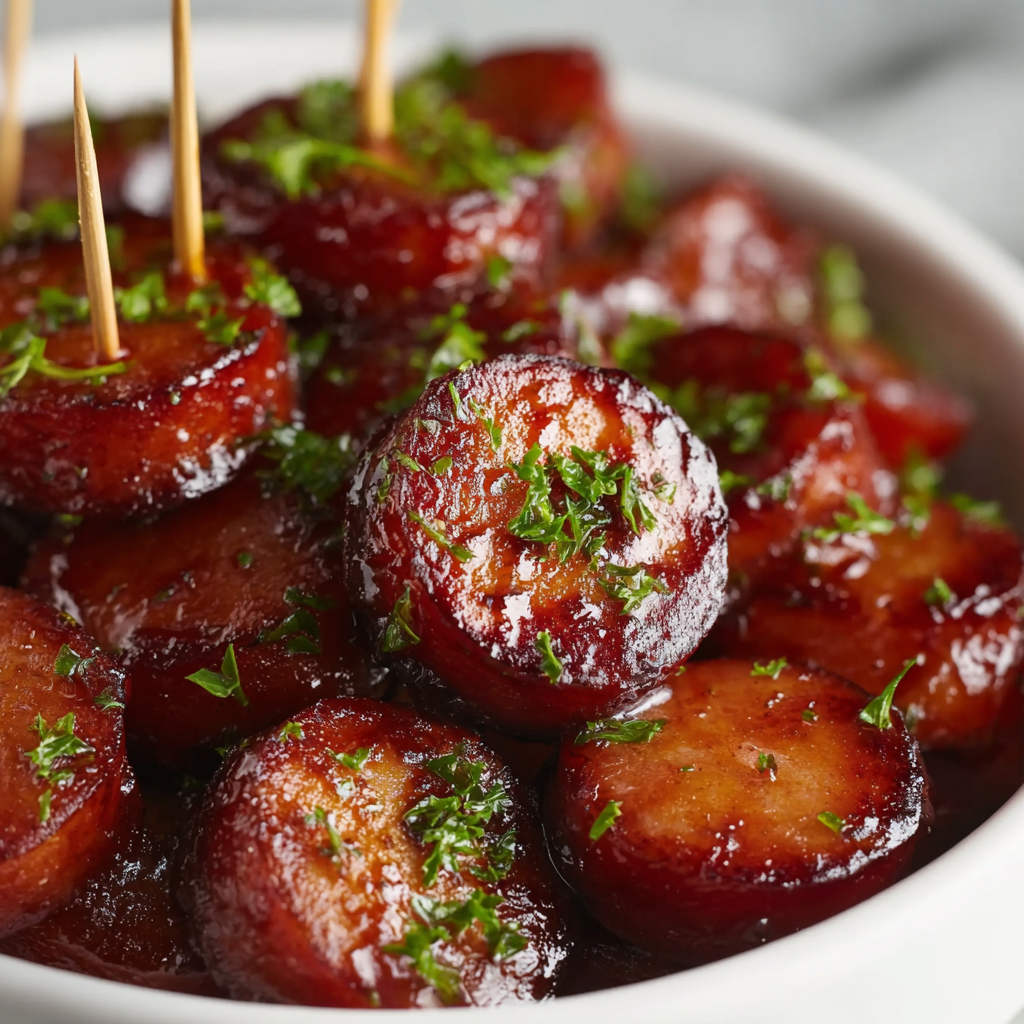 Few appetizers disappear faster at a party than Candied Kielbasa Bites. These irresistible little sausage rounds are sticky, sweet, smoky, and savory all at once—exactly the kind of finger food guests hover around until the bowl is empty.