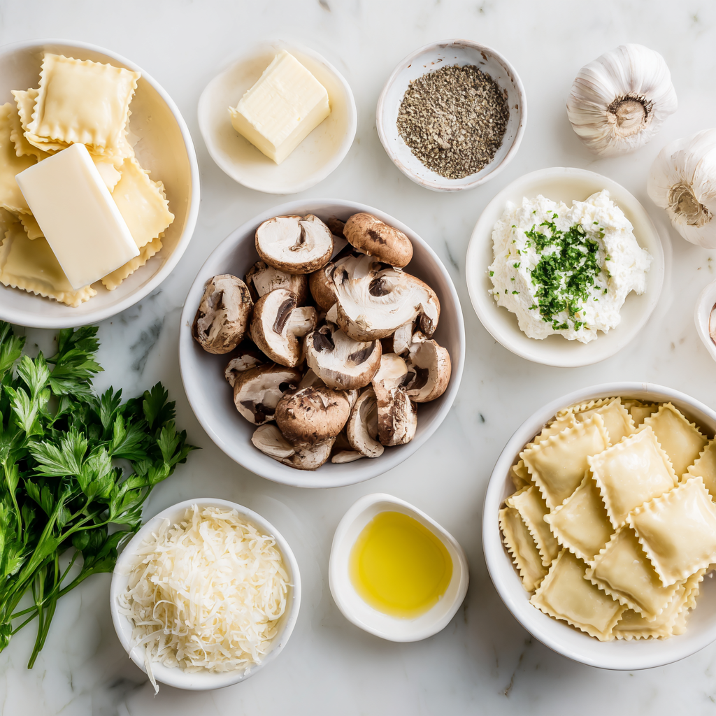Fresh cheese ravioli works best here, but refrigerated mushroom, spinach, or four-cheese ravioli also shine. Because the sauce is creamy and savory, neutral fillings let the mushrooms take center stage while still delivering richness in every bite.