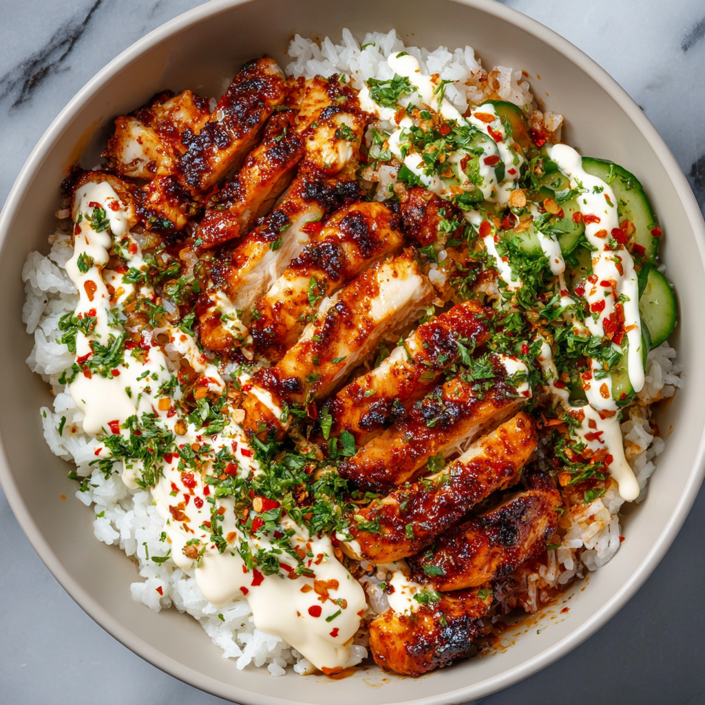 If you’re craving a meal that’s hearty, flavorful, and satisfying without being complicated, this Spicy Chicken & Rice Bowl with Cream Sauce checks every box. Juicy, spice-rubbed chicken paired with fluffy rice and finished with a cool, creamy sauce creates the perfect balance of heat and comfort — all in one bowl.