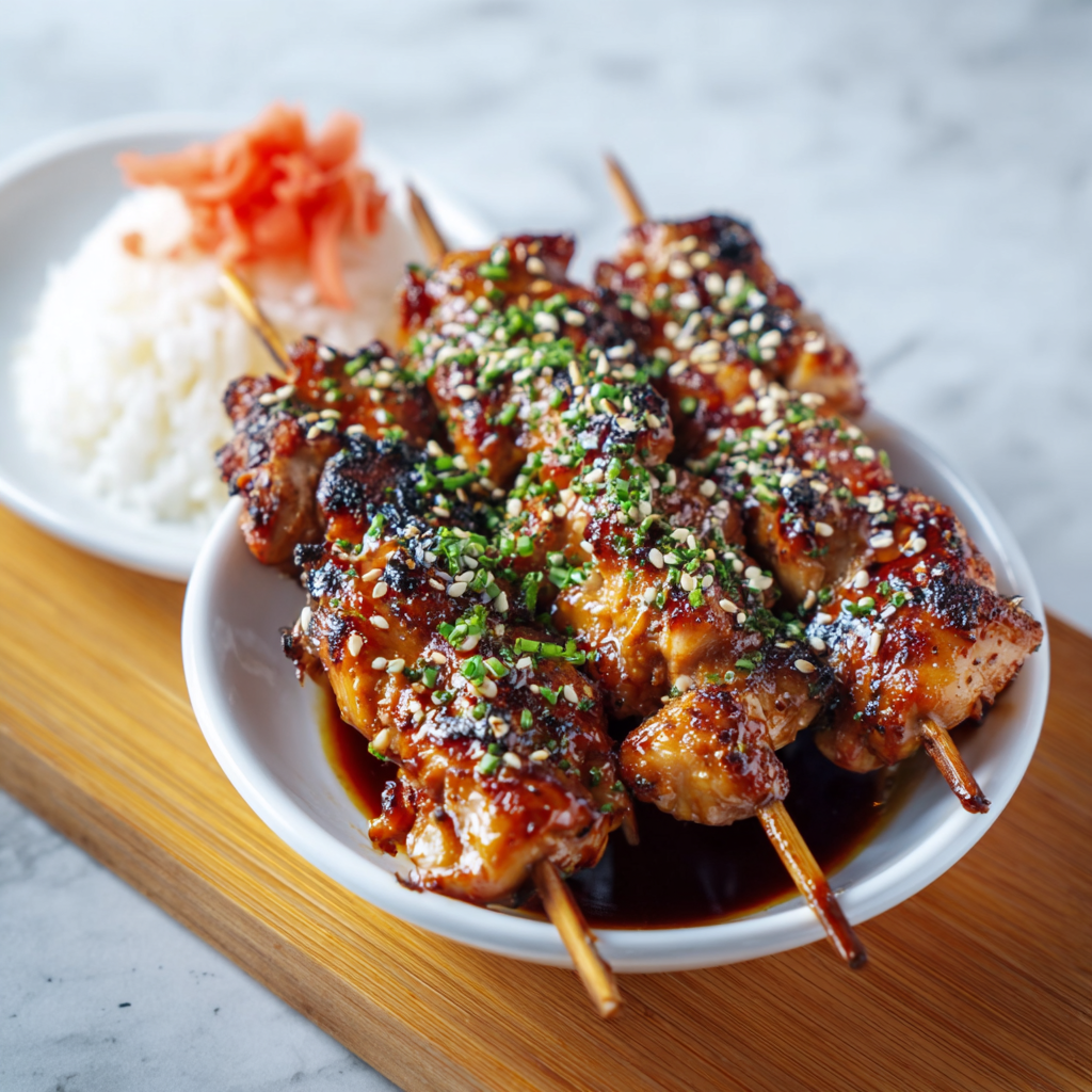 Teriyaki is a classic Japanese cooking technique where “teri” means shine (from the glossy sauce) and “yaki” means grill or broil. While traditional yakitori uses simple salt or tare sauce, modern teriyaki chicken skewers have become a global favorite, especially in American-Japanese fusion cuisine.