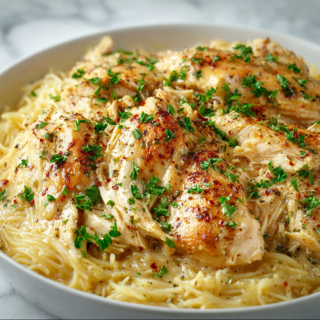 Crock pot angel chicken is the ultimate slow cooker comfort food — creamy, rich, and incredibly easy to make. Served over angel hair pasta, it’s a nostalgic, crowd-pleasing dish that feels like a warm hug in a bowl.