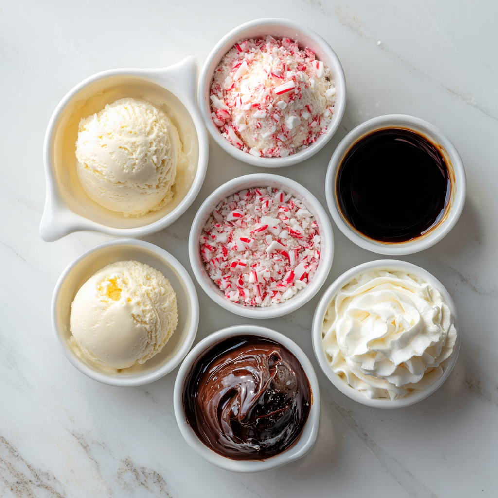 - Blend: Add ice cream, milk, peppermint extract, vanilla extract, and crushed candy canes to a blender.