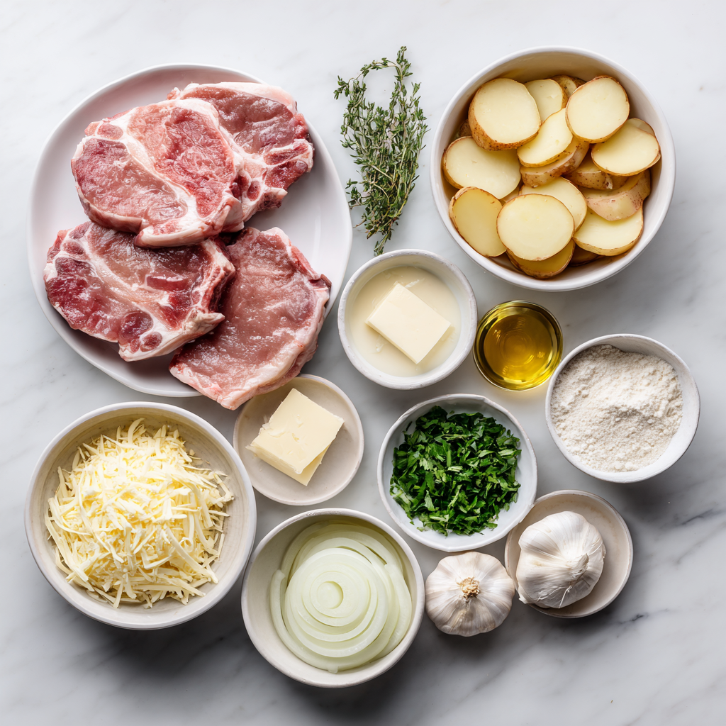 This casserole is inspired by classic Southern smothered pork chops and traditional scalloped potatoes, but instead of serving them separately, everything bakes together in one dish. The result? Maximum flavor with minimal cleanup. The pork chops stay tender, the potatoes become melt-in-your-mouth soft, and the creamy sauce thickens beautifully as it bakes.