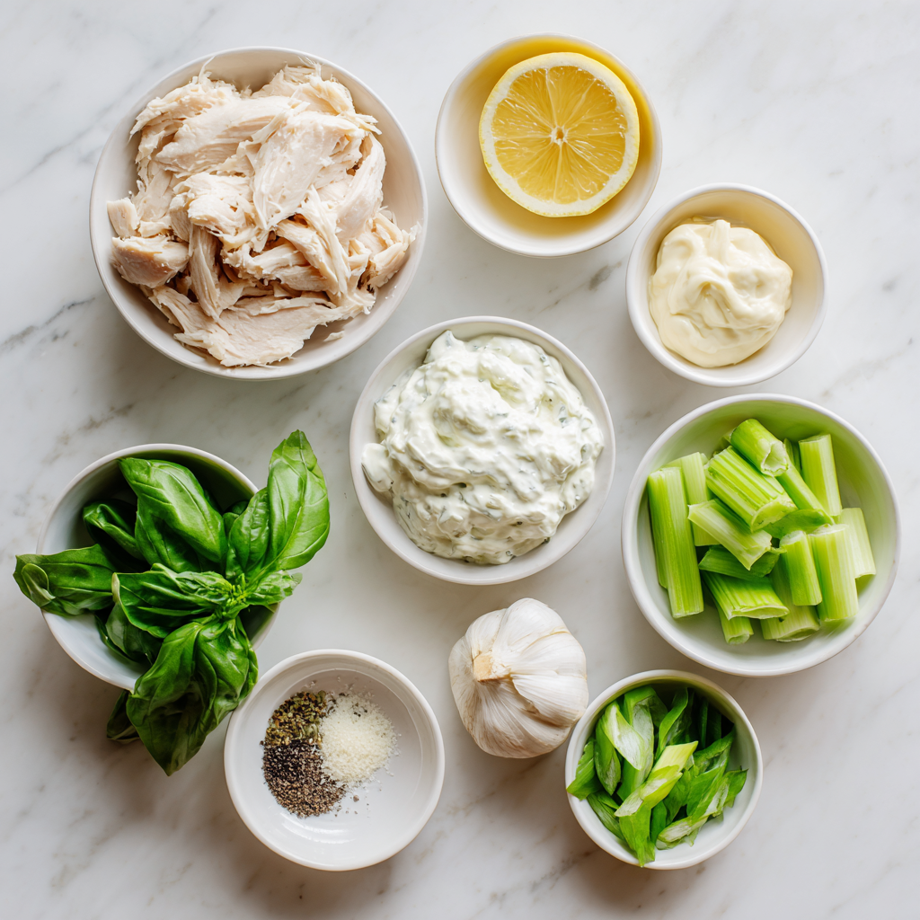 What sets this chicken salad apart is balance. Lemon juice and zest cut through the creaminess, basil adds natural sweetness, and a touch of garlic deepens the flavor without overpowering it. Using a mix of mayonnaise and Greek yogurt keeps the texture rich while adding lightness.