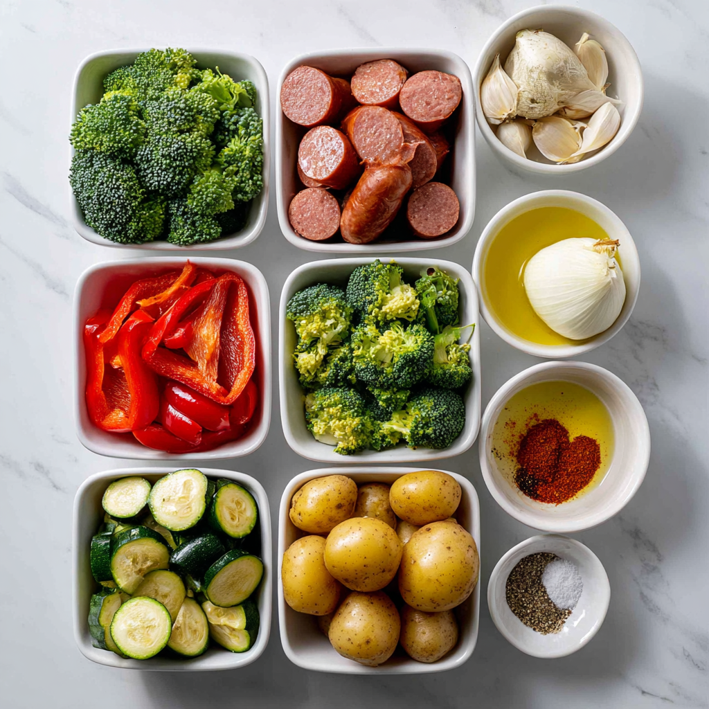 The magic of this dish lies in contrast and balance. Smoked sausage brings savory depth and a bit of fat, which helps the vegetables caramelize instead of steam. High heat roasting intensifies natural sweetness, especially in peppers and onions.
