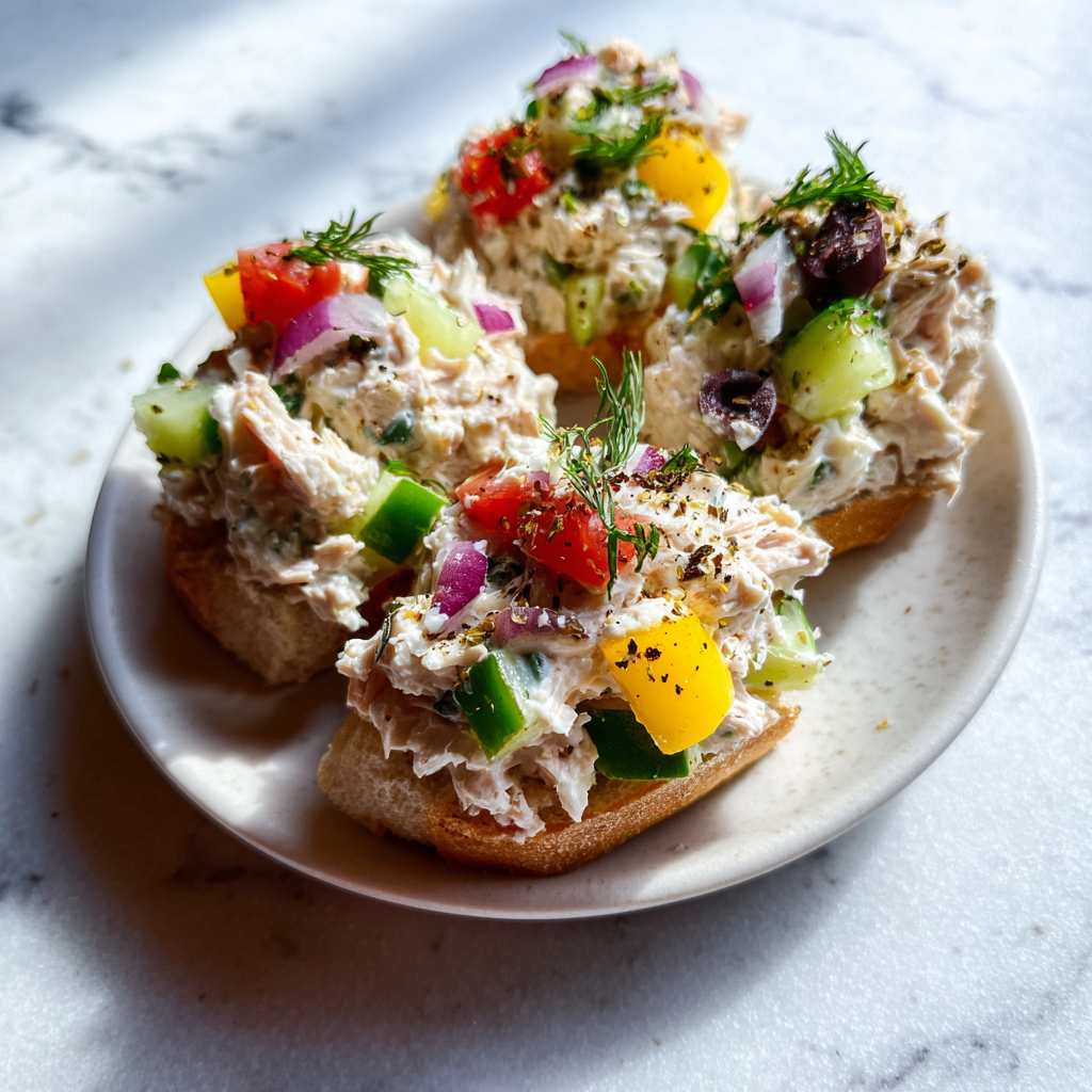 Tuna has been preserved and enjoyed across the Mediterranean for millennia, from ancient Phoenician fishing techniques to modern Italian tonno in olio. Feta cheese, protected by EU designation and traditionally made from sheep or goat milk in Greece, adds a signature briny tang that pairs beautifully with seafood. Classic Greek tuna salads (tonosalata) often feature simple olive oil and lemon dressings, but incorporating Greek yogurt for extra creaminess is a popular contemporary adaptation that boosts protein and probiotics.