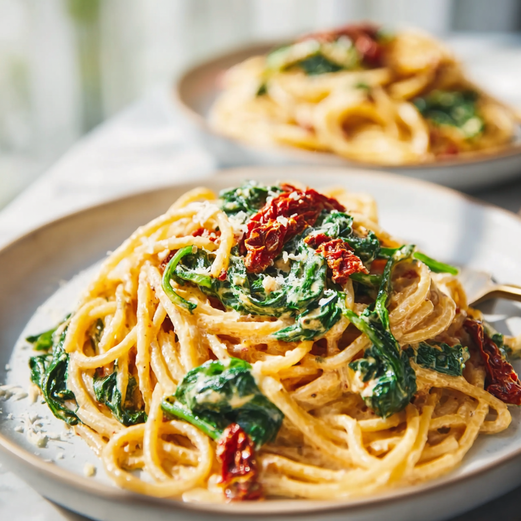 Spaghetti & Spinach with Sun-Dried Tomato Cream Sauce