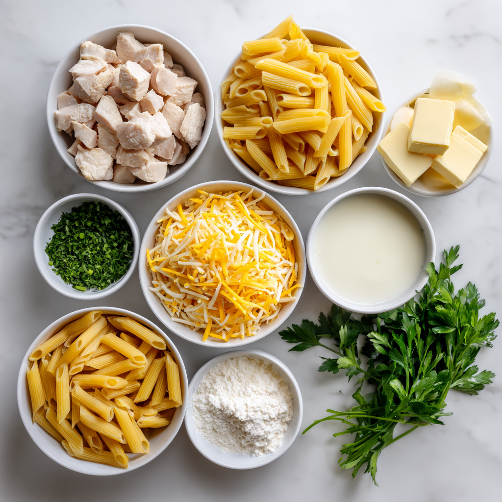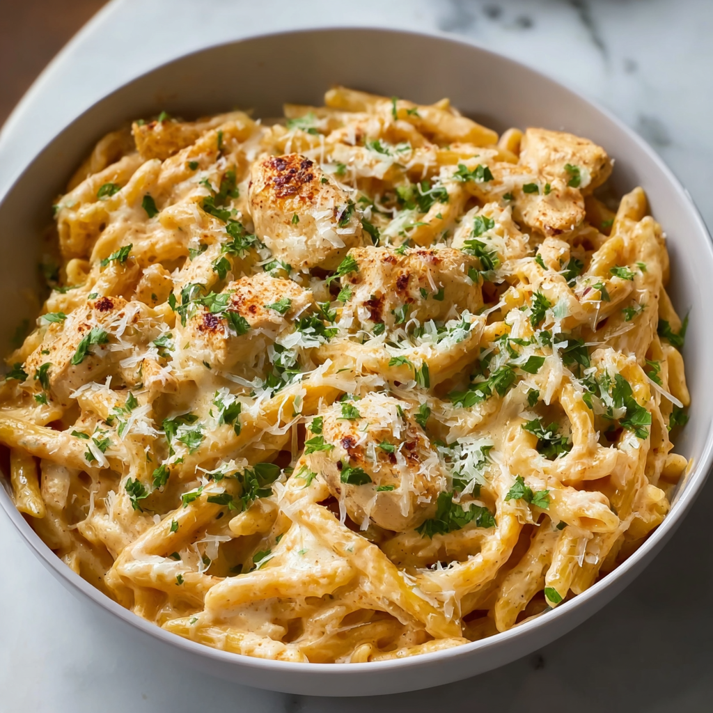 Creamy cheesy pasta dishes like this draw inspiration from classic American comfort foods, blending elements of macaroni and cheese with Italian-American chicken Alfredo influences. The addition of chicken makes it a protein-packed twist on traditional pasta recipes, popular in home kitchens across the U.S. for its quick prep and satisfying results. In recent years, one-pan creamy chicken pastas have surged in popularity on social media and recipe sites due to their ease and Instagram-worthy creaminess—proving that simple ingredients can create memorable meals.