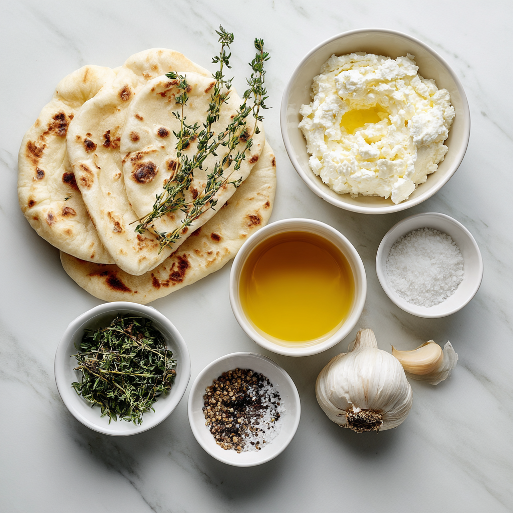 In a bowl, stir ricotta with olive oil, garlic, salt, and black pepper until smooth and spreadable. - Assemble the Flatbread