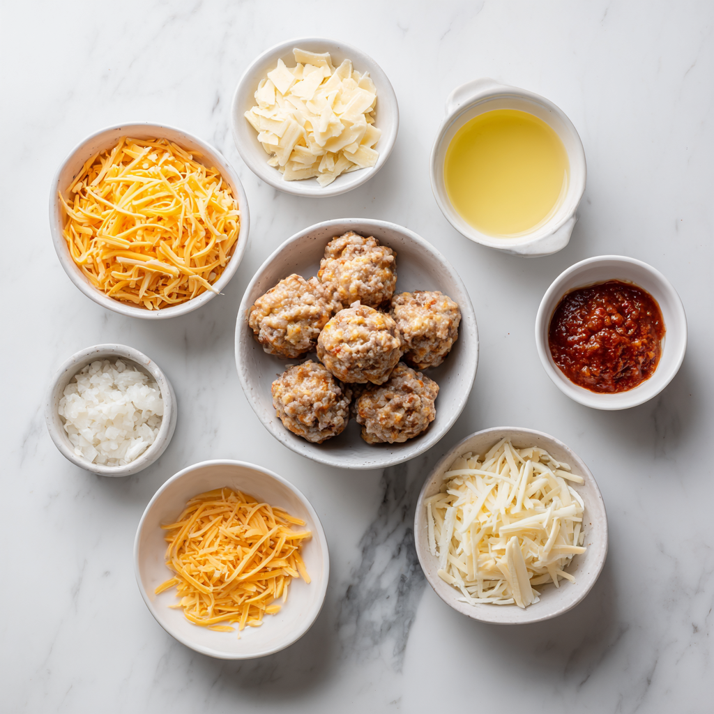 Switch sausage to turkey or chicken for lighter bites. Use sharp cheddar instead of Mexican blend for bolder cheese flavor. Add extras like chopped jalapeños, garlic powder, or ranch seasoning for twists. For a biscuit-inspired version, try Cheddar Bay mix. Make mini versions for bite-sized apps or larger for hearty snacks.