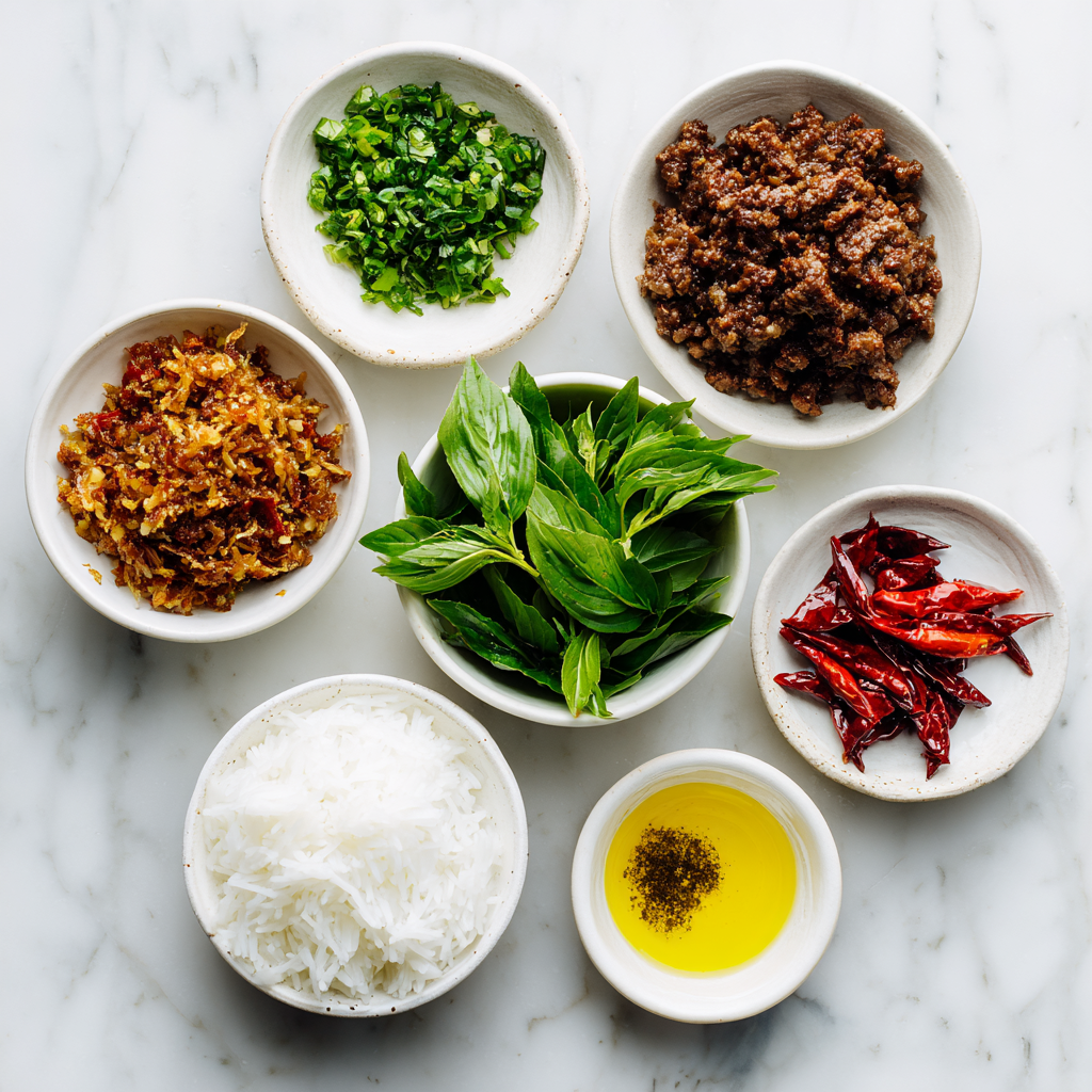 - 1-2 cups fresh Thai basil leaves (holy basil preferred, packed)