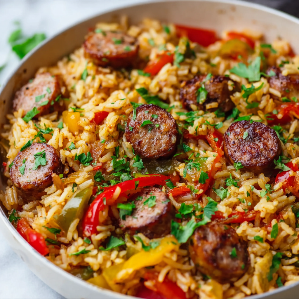 Cooking the sausage first builds a flavorful base. The rice then absorbs the seasoned broth and sausage drippings, creating deep, savory flavor without extra effort. Everything cooks together in one pan, ensuring harmony between ingredients while keeping cleanup minimal.