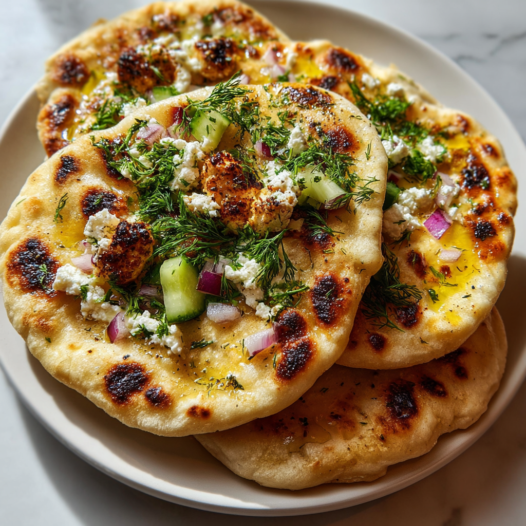 - Cook flatbreads one at a time for 1–2 minutes per side until bubbles form and golden spots appear.