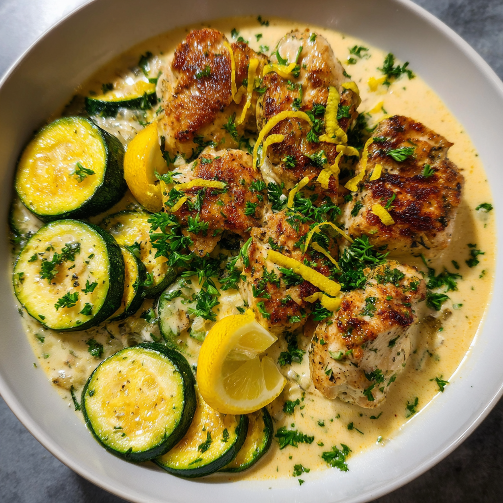 If you’re craving a dinner that feels luxurious, comforting, and restaurant-worthy, yet still quick enough for a busy weeknight, this creamy lemon butter chicken & zucchini is the answer. Tender pan-seared chicken breasts simmered in a silky lemon butter cream sauce with perfectly cooked zucchini create a dish that’s bright, rich, and deeply satisfying all at once.