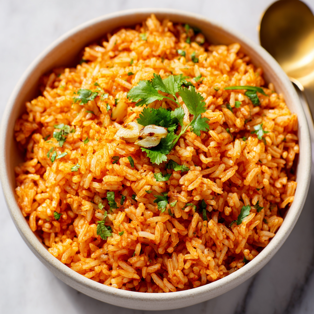 In many households across Mexico and the American Southwest, arroz rojo is a staple that appears on the table several times a week. It pairs effortlessly with tacos, enchiladas, grilled meats, beans, and roasted vegetables, yet it is satisfying enough to enjoy on its own. What makes it special is not complexity, but technique. The rice is toasted first, garlic is gently cooked until fragrant, and tomato is layered in just the right amount to color and season without overpowering.