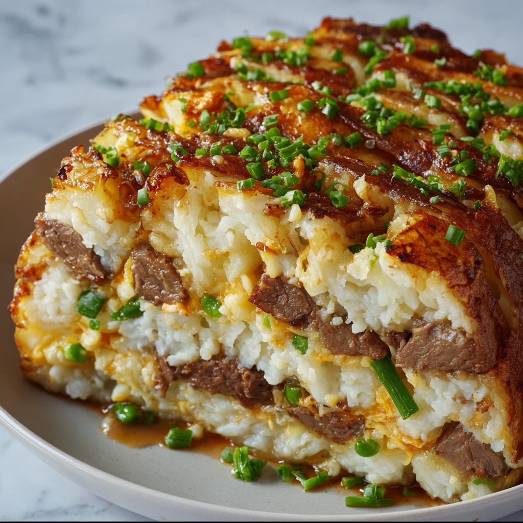 This dish has roots in European-style potato bakes and casseroles, where potatoes are used as both the base and the star ingredient. The loaf format modernizes the idea, making it easier to serve and visually impressive.