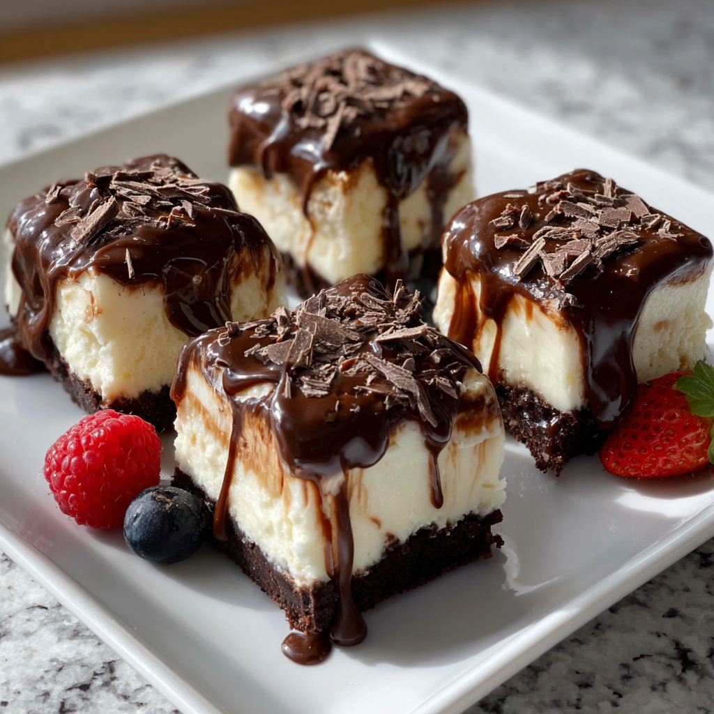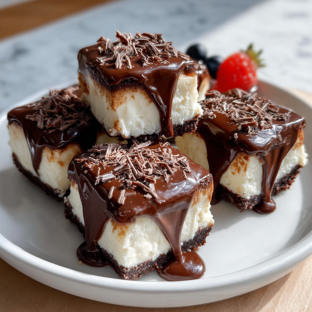 Each bite delivers silky chocolate cream cheese filling atop a crisp, buttery crust, finished with a smooth chocolate ganache or drizzle. They’re indulgent yet perfectly portioned, making them ideal for parties, dessert tables, or quick personal treats.