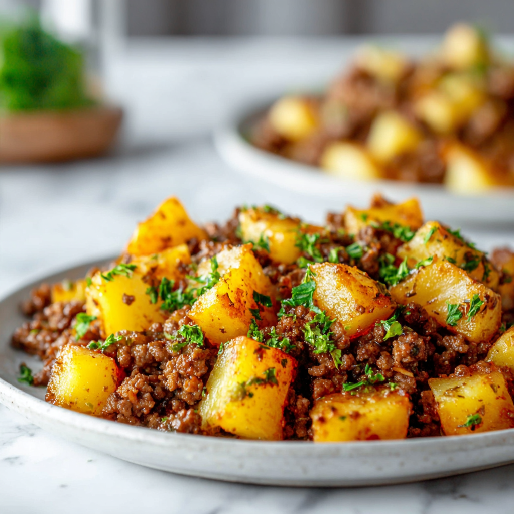 This version is cooked in one pan for maximum flavor and minimal cleanup. The potatoes are perfectly golden and tender, the ground beef is savory and well-seasoned, and the aromatics bring everything together in a way that feels both rustic and refined.