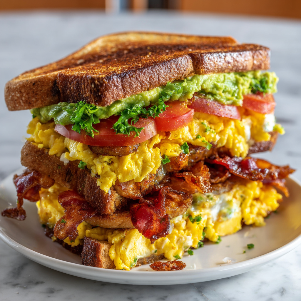 Unlike standard breakfast sandwiches that rely on a single protein and one slice of bread, this version is stacked high with multiple layers, making it filling enough to power you through the entire day. It is bold, comforting, and deeply satisfying, while still balanced by fresh ingredients and thoughtful layering.